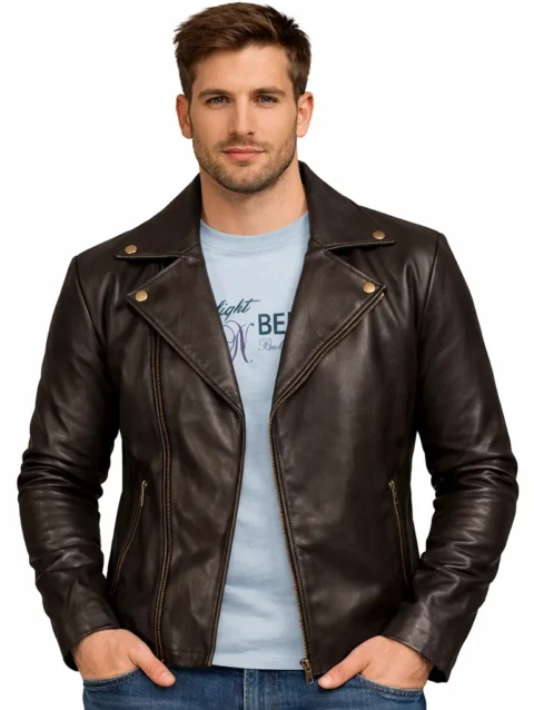 Noah Men’s Brown Leather Biker Jacket Real Sheepskin Semi-Aniline Finish Motorcycle Jacket