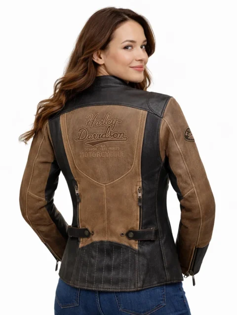 Harley-Davidson Women’s Gallun Triple Vent Brown Motorcycle Leather Jacket