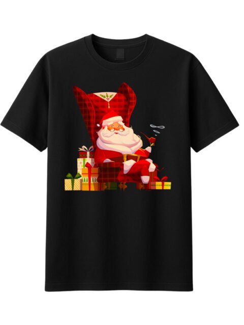 Black Festive Santa Claus Graphic T-Shirt Christmas Gift Stack Illustration Tee