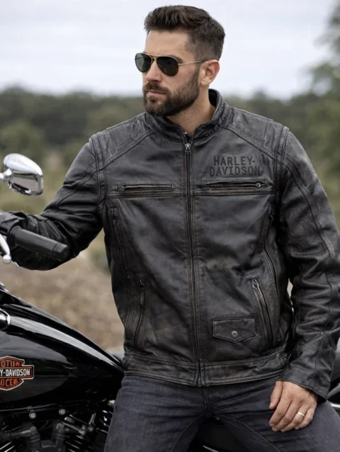 Harley-Davidson Men’s Midway Distressed Leather Jacket, Charcoal