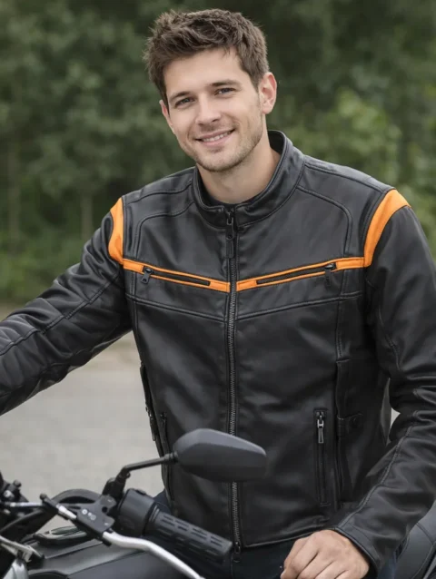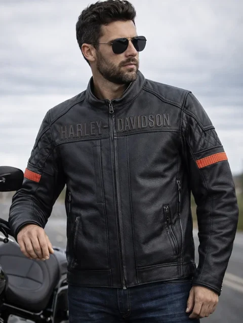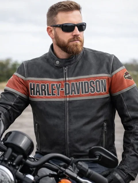 Harley-Davidson Men’s Capitol Triple Vent System 2.0 Leather Jacket – Harley Black & Harley Orange