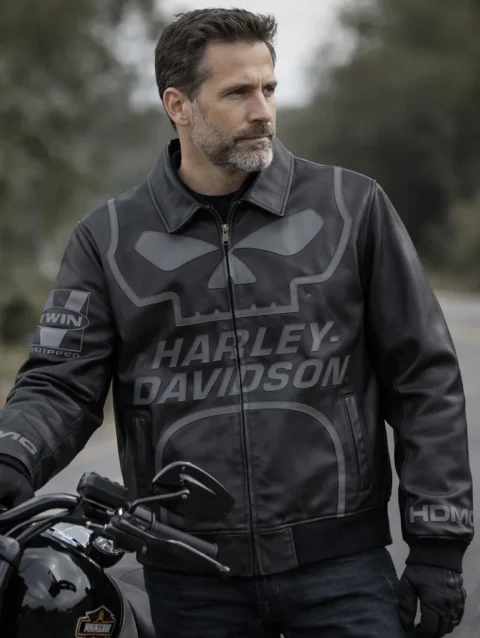 Harley Davidson Men’s Reflective Skull Leather Jacket