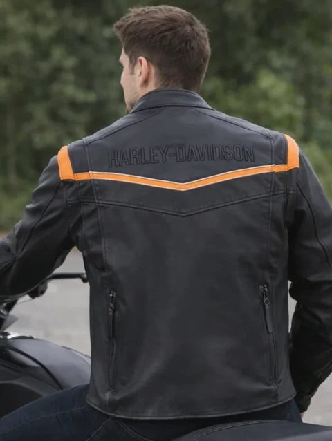 Harley-Davidson Men’s Capitol Triple Vent System 2.0 Leather Jacket – Harley Black & Harley Orange