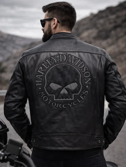 Harley Davidson Men’s Reflective Skull Leather Jacket
