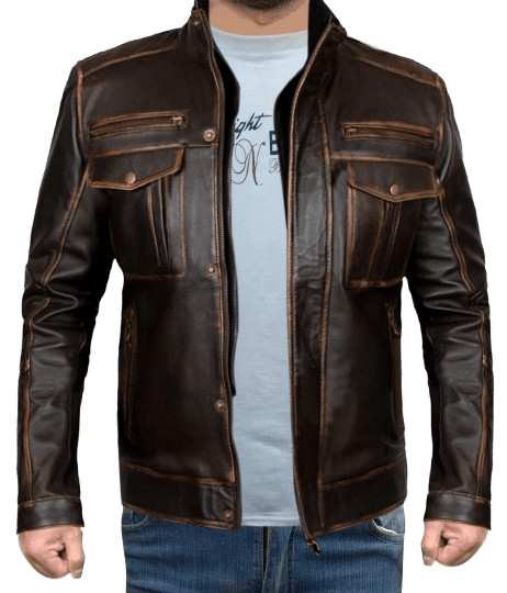 Men’s Vintage Dark Brown Distressed Leather Cafe Racer Biker Jacket
