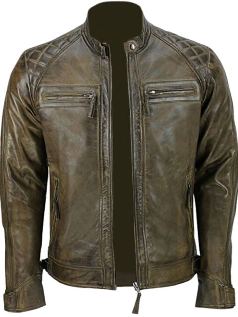 Men’s Vintage Brown Quilted Biker Leather Jacket