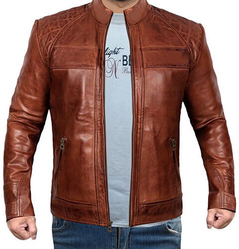 Men’s Timber Diamond Shoulder Fashion Leather Jacket Brown Slim Fit Jacket