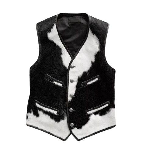 Black & White Genuine Cowhide Hair-On Leather Western Vest Men’s Premium Rodeo Style