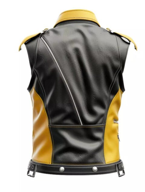 Men’s Yellow and Black Leather Biker Vest Stylish Motorcycle Leather Outerwear