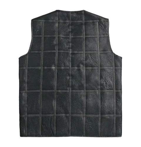 Black Genuine Leather Men’s Quilted Patchwork Vest with Front Zipper Closure Premium Streetwear Outerwear