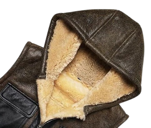 Brown Shearling Leather Vest with Hood Premium Men’s Cozy Outerwear