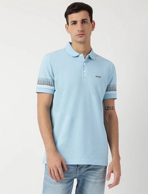 HUGO BOSS LOGOS COTTON PIQUE JACUARD POLO SHIRT | LIGHT BLUE