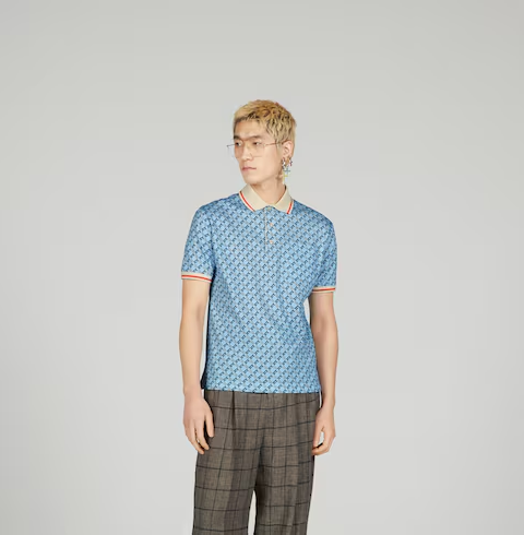 GUCCI Geometric G Cotton Piquet Polo Shirt | TURQUOISE / INORY