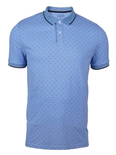 JULES. DOTTED PRINT-RIBBED-SHORT SLEEVE-POLO SHIRT | LIGHT BLUE