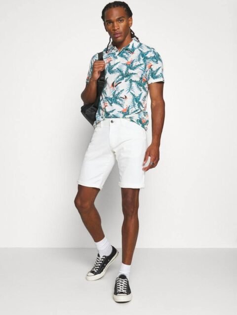 JACK & JONES. TROPICAL PRINT SHORT SLEEVE POLO SHIRT | WHITE