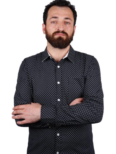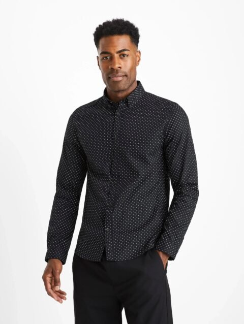 NEXT-CLASSIC DOTTED PRINT-SLIM FIT-CASUAL SHIRT | BLACK