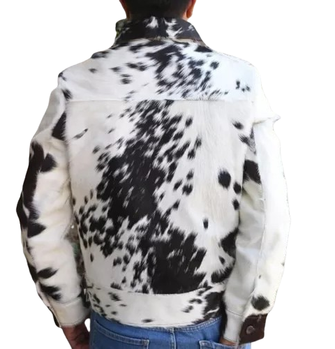 Men’s Black & White Hair-On Cowhide Leather Jacket Genuine Natural Cow Print