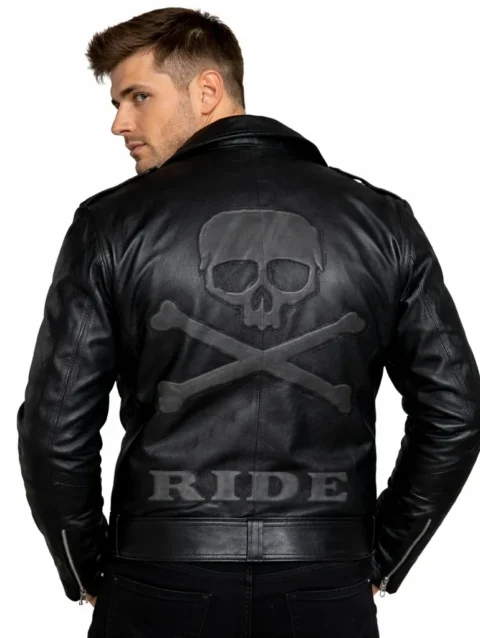 Men’s Black Genuine Sheepskin Leather Biker Jacket Negan Inspired from The Walking Dead