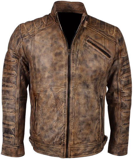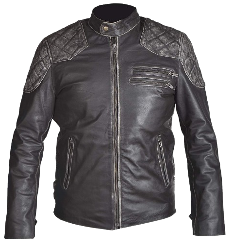 Men’s Distressed Cafe Racer Leather Jacket Quilted Shoulder & Elbow Panels, Vintage Slim Fit