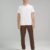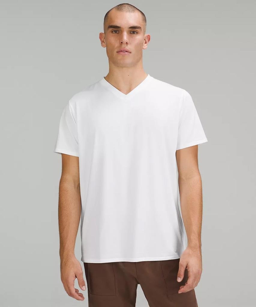 This tee in plain pattern also features short sleeves, V neck and straight hem. This tee is made of cotton stretch material.