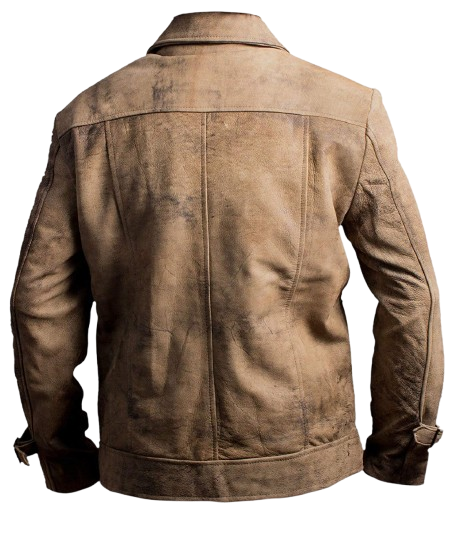 distressed brown genuine leather jacket, inspired by the one worn by Jason Statham