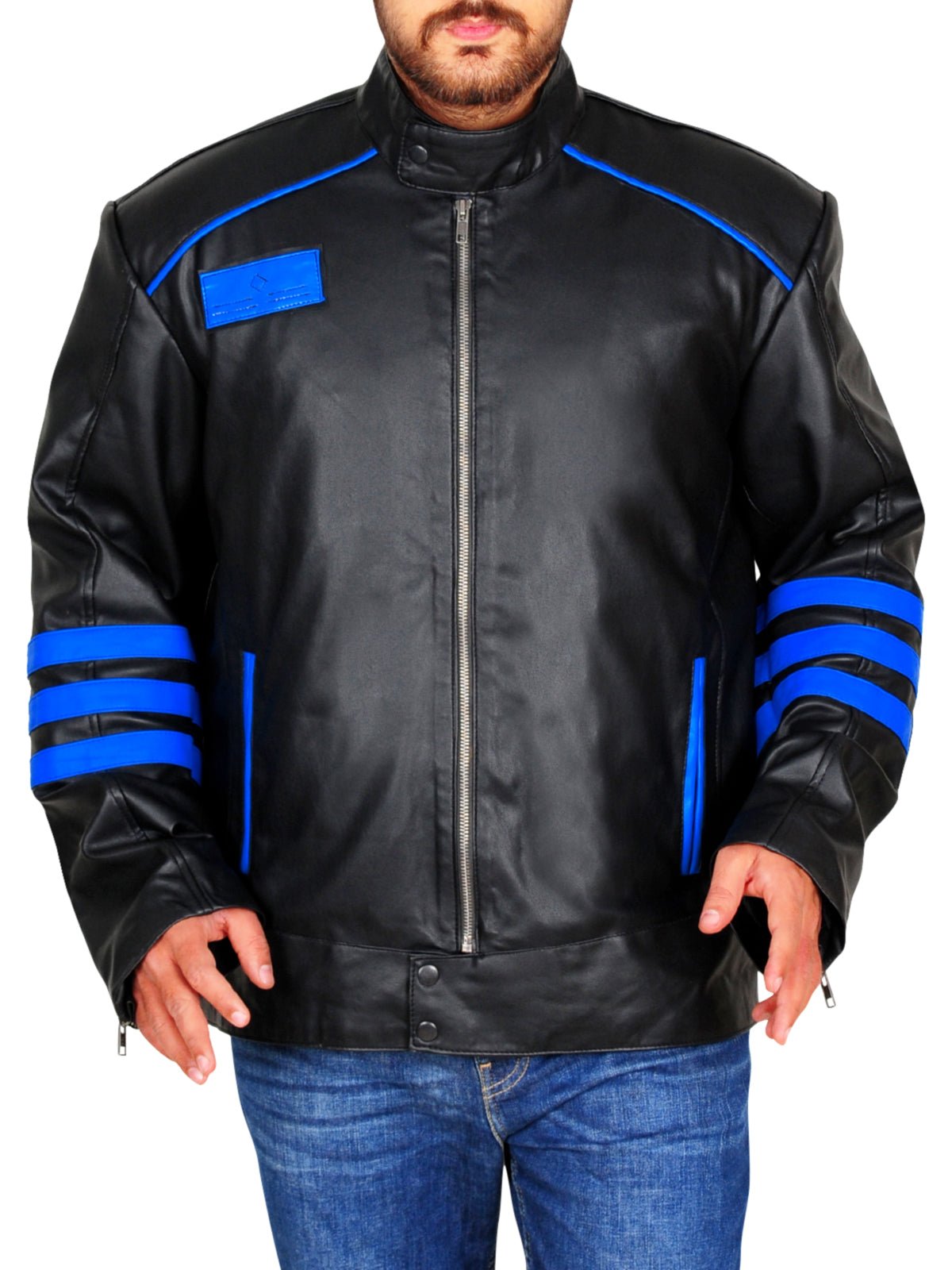 Be the first to review “Flynn McAllistair Power Rangers RPM Blue-Striped Leather Jacket”