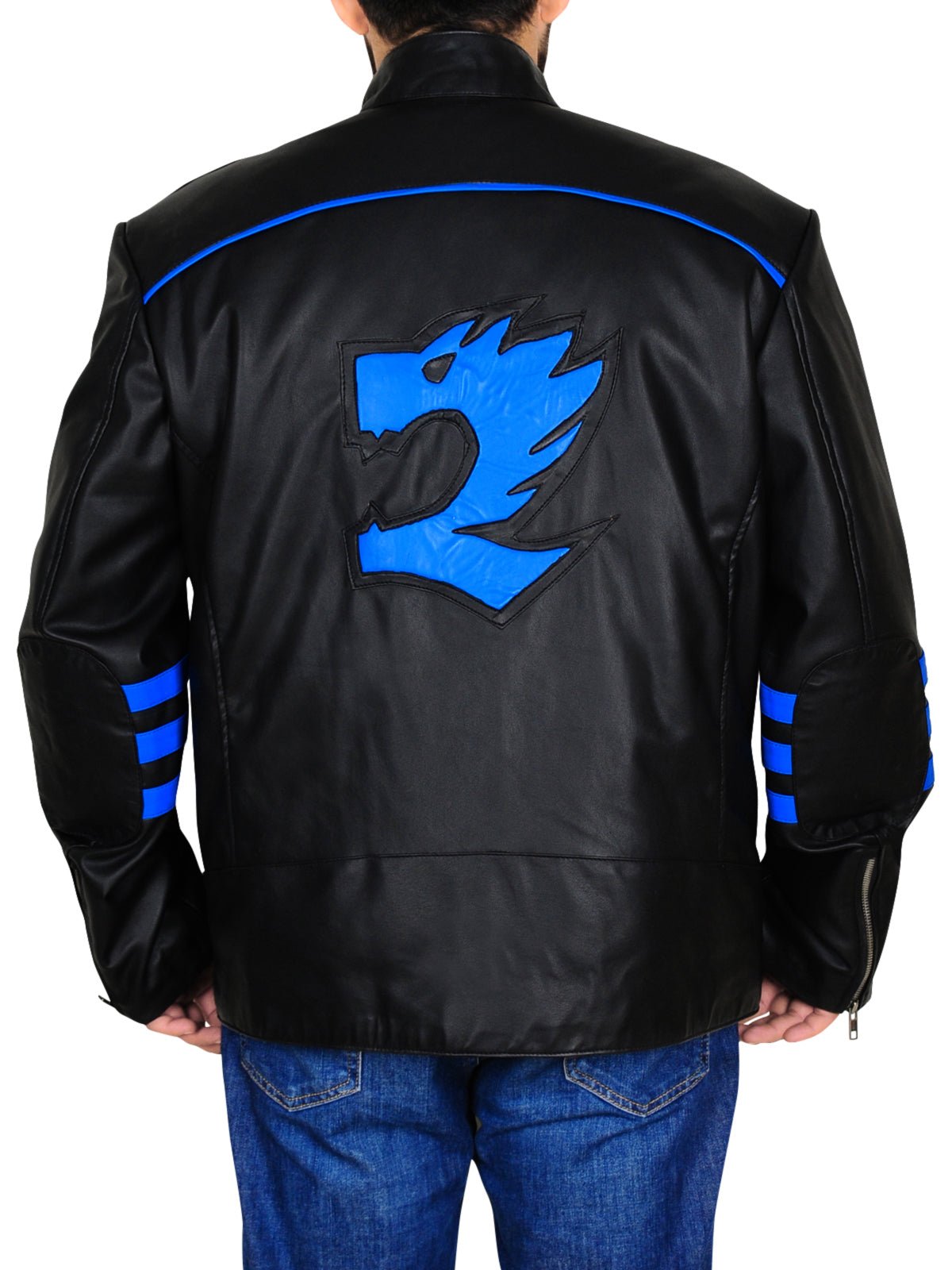 Step into the world of Power Rangers with the Flynn McAllistair RPM Leather Jacket. Inspired by the iconic Blue Ranger, this jacket features a stand-up collar, bold blue stripes, and a slim-fit design for a superhero-inspired look.