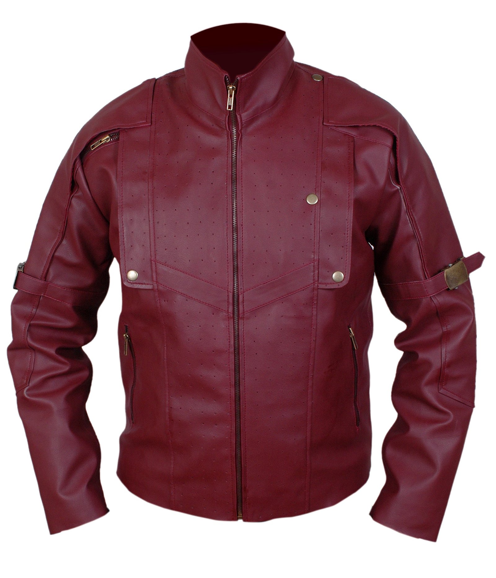 Step into the role of Peter Quill with this Star-Lord distressed red faux leather jacket, a faithful replica from Guardians of the Galaxy. Crafted from premium faux leather, this jacket combines authentic movie styling with everyday comfort, featuring structured shoulders, a stand-up collar, and multiple pockets.
