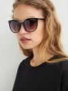 Rectangular sunglasses with plastic frames and tinted, UV-protective plastic lenses.
