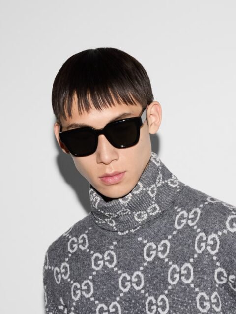 - Shiny black and tortoiseshell acetate temples with Gucci logo