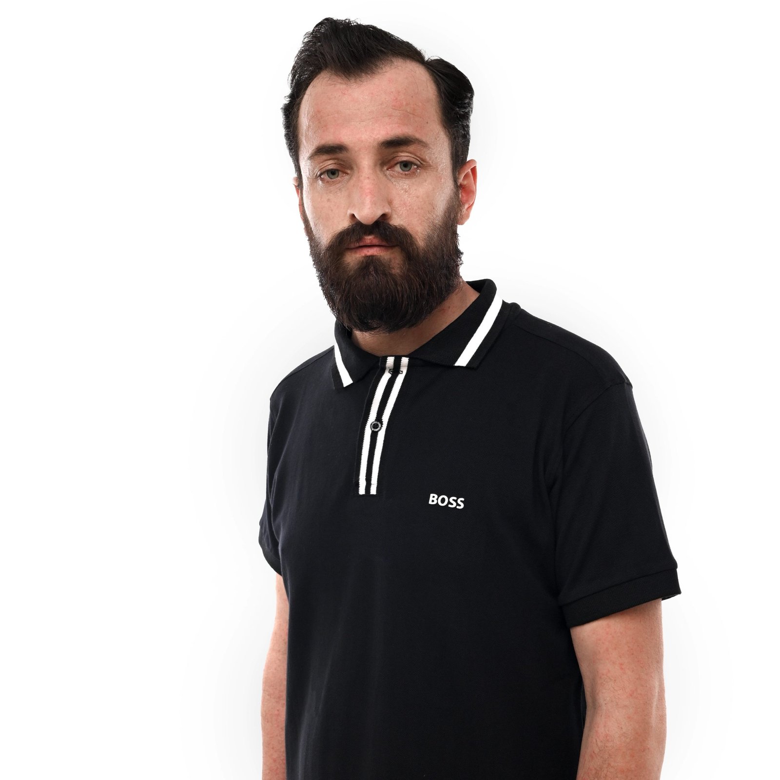 HUGO BOSS. DERESO WHITE LOGO POLO SHIRT | BLACK