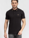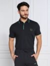 HUGO BOSS PAULE SLIM FIT GEOMETRIC POLO | BLACK