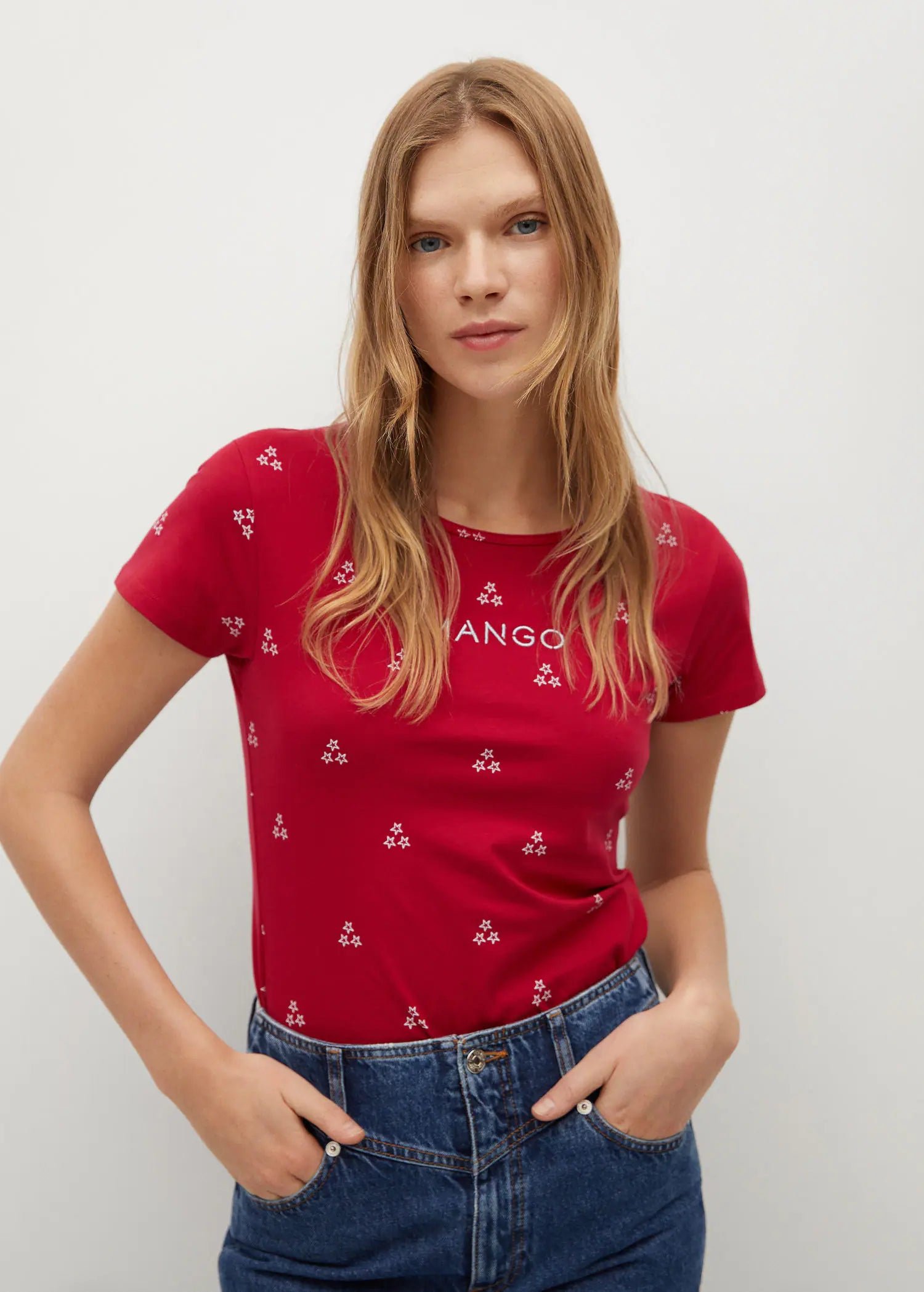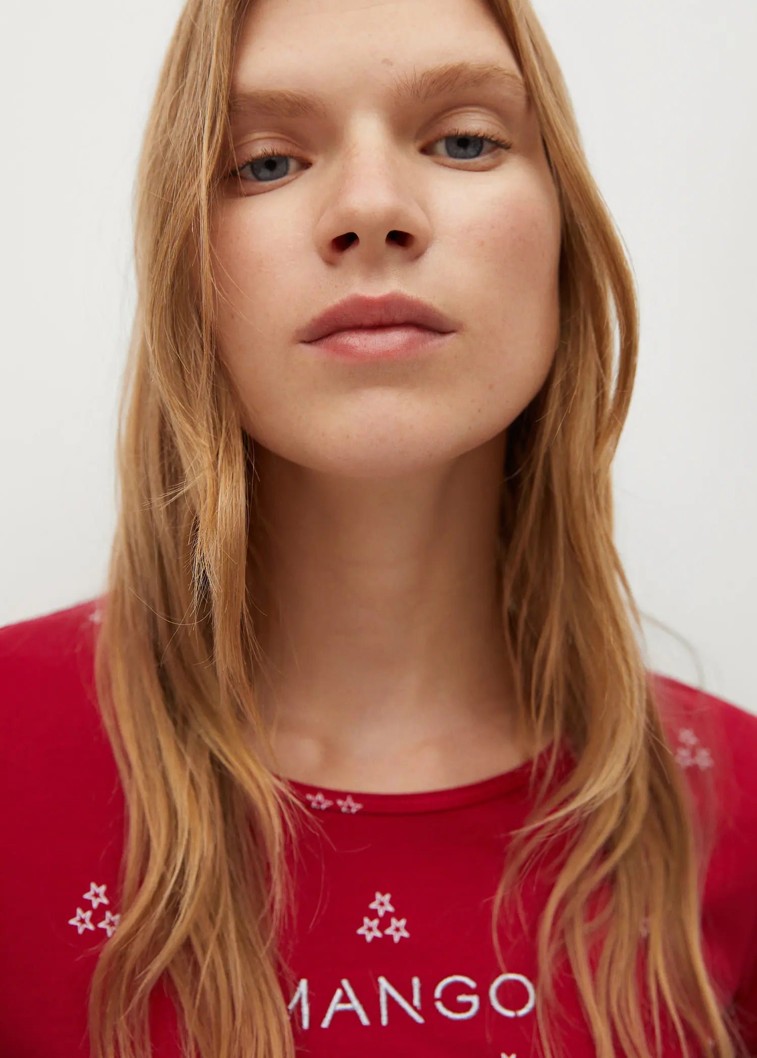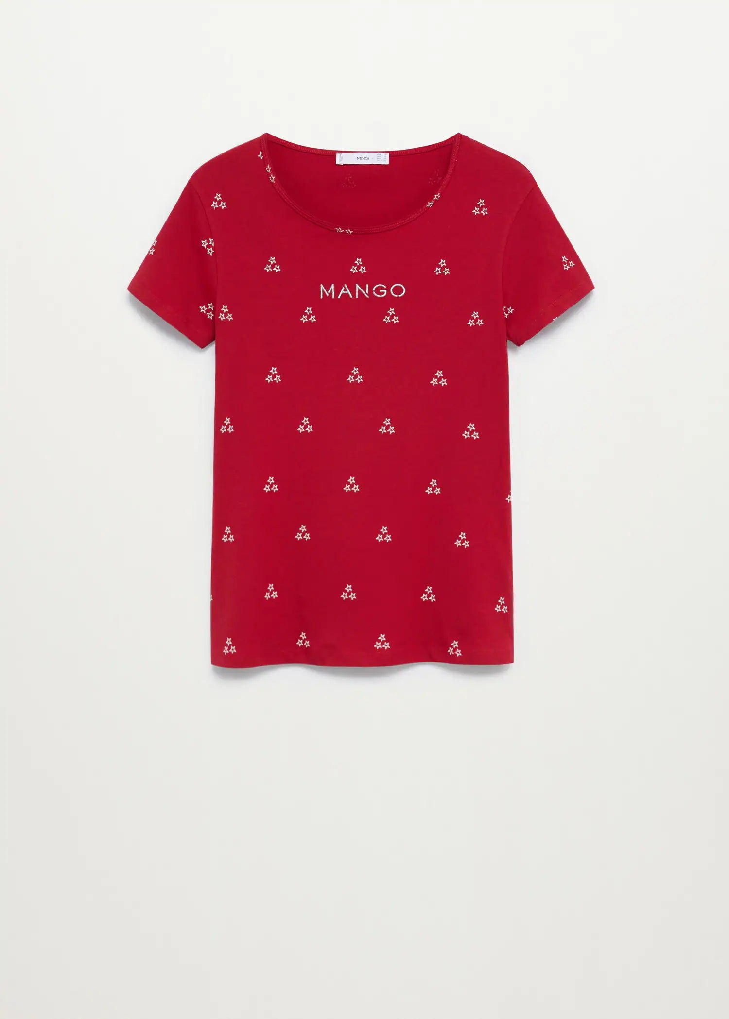M.A.N.G.O-WOMEN EMBROIDERED LOGO T-SHIRT | RED