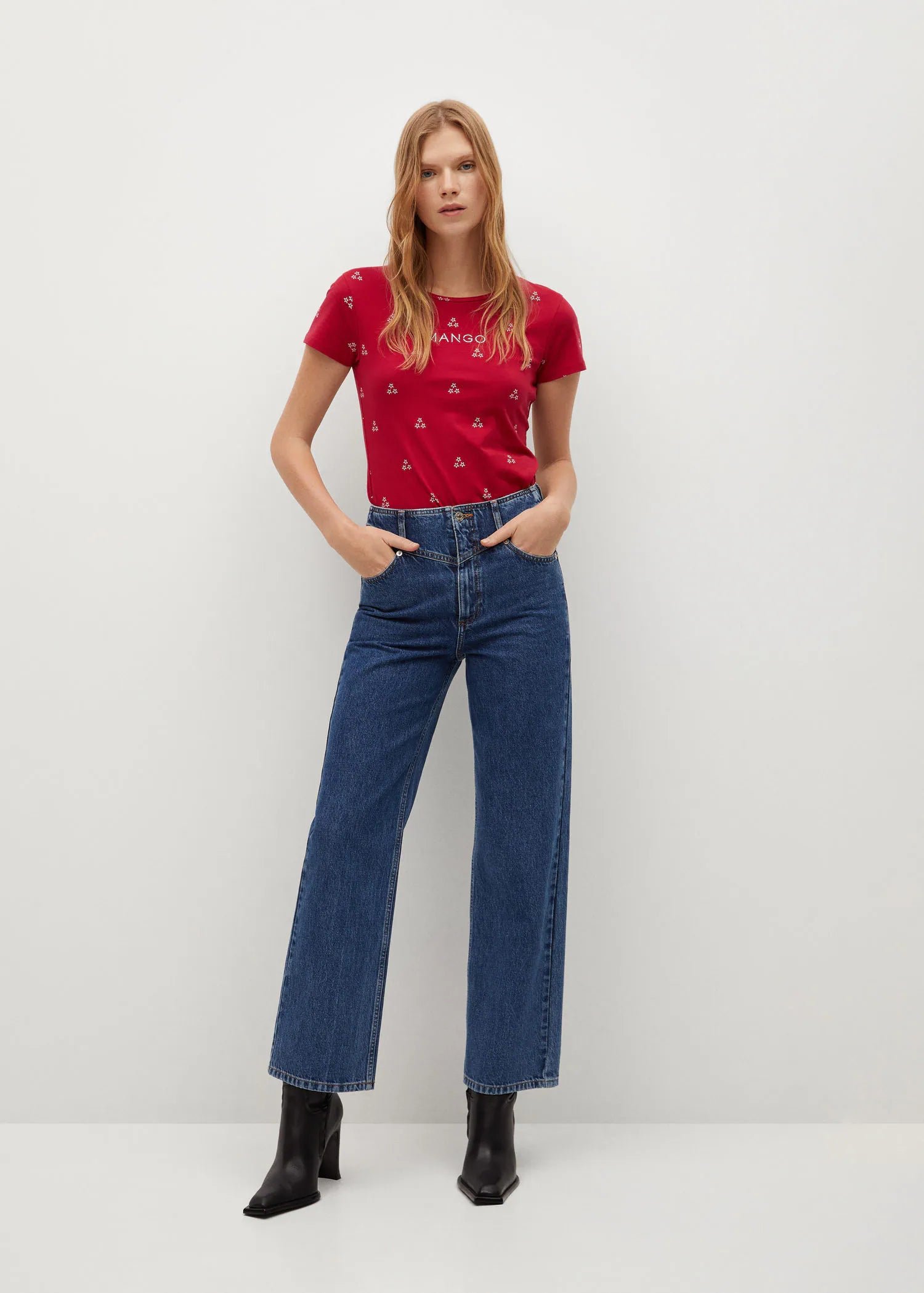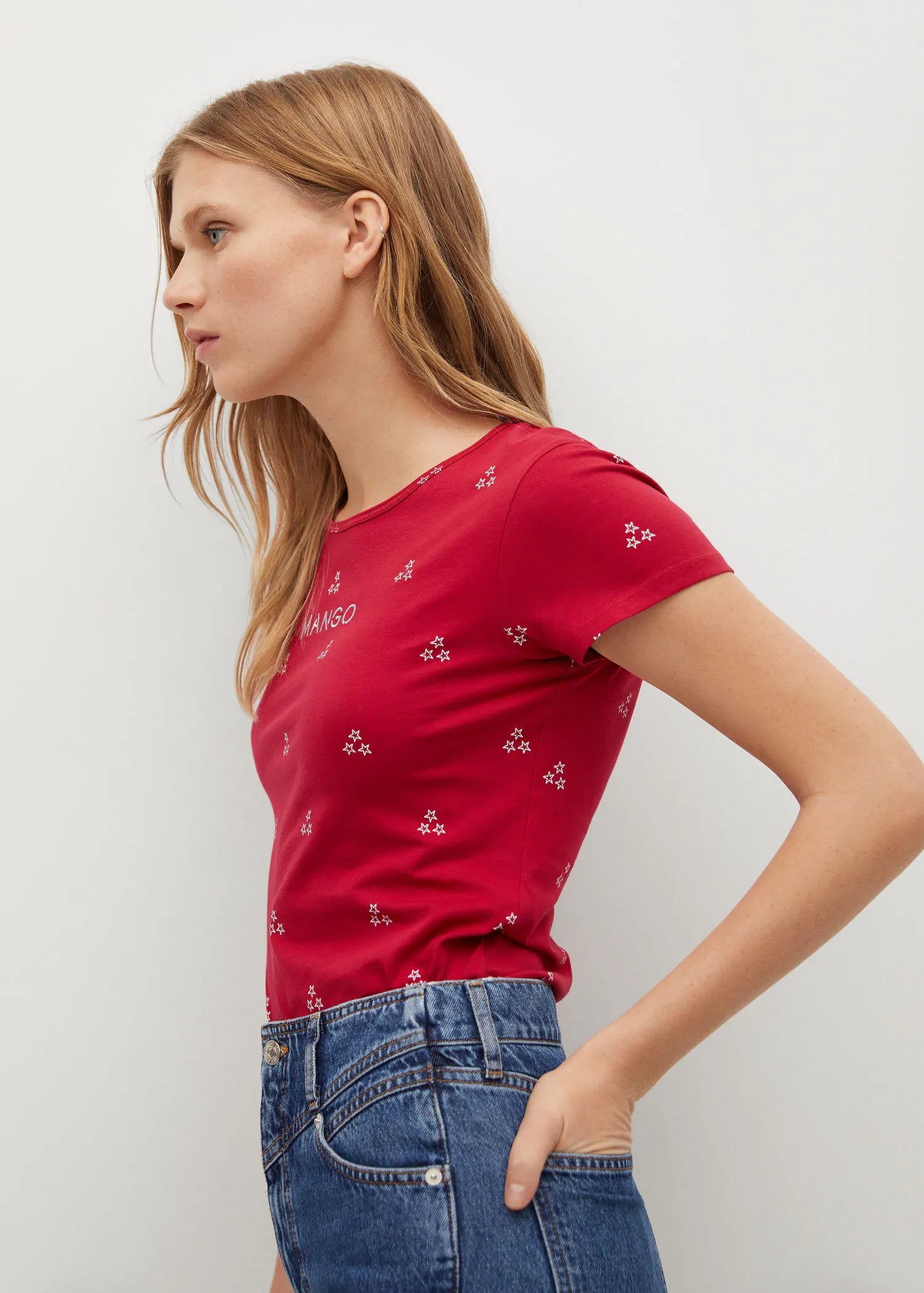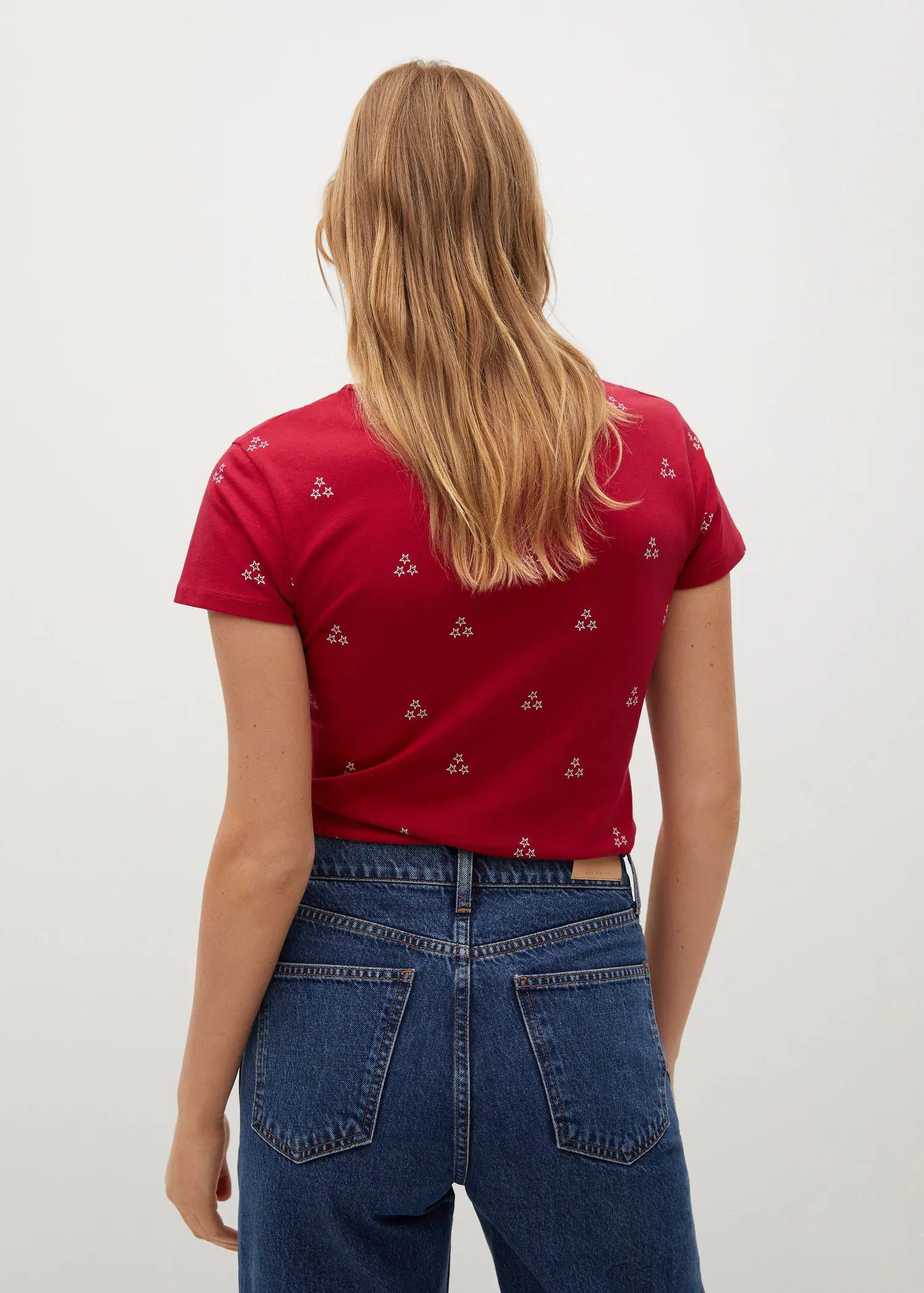 M.A.N.G.O-WOMEN EMBROIDERED LOGO T-SHIRT | RED