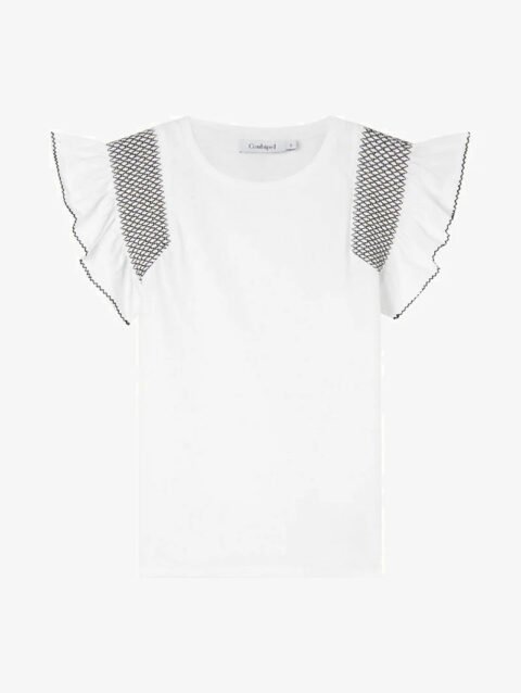 This MANGO ETHICAL PRINTED GREEN T-SHIRT is made from 100% cotton in Bangladesh, making it both sustainable and original. With its unique design, it offers a stylish and ethical addition to your wardrobe. Support fair fashion with this white tee.