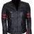 Men’s Black Leather Biker Jacket with Red Racing Stripes Genuine Leather Motorcycle Jacket