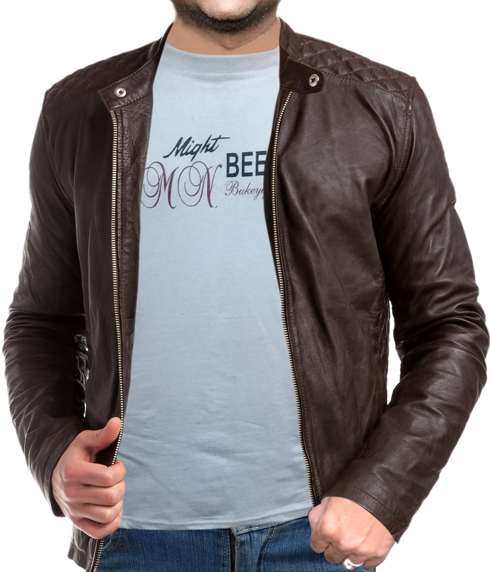 Men’s Brown Leather Moto Style Fashion Jacket Modern Biker Outerwear