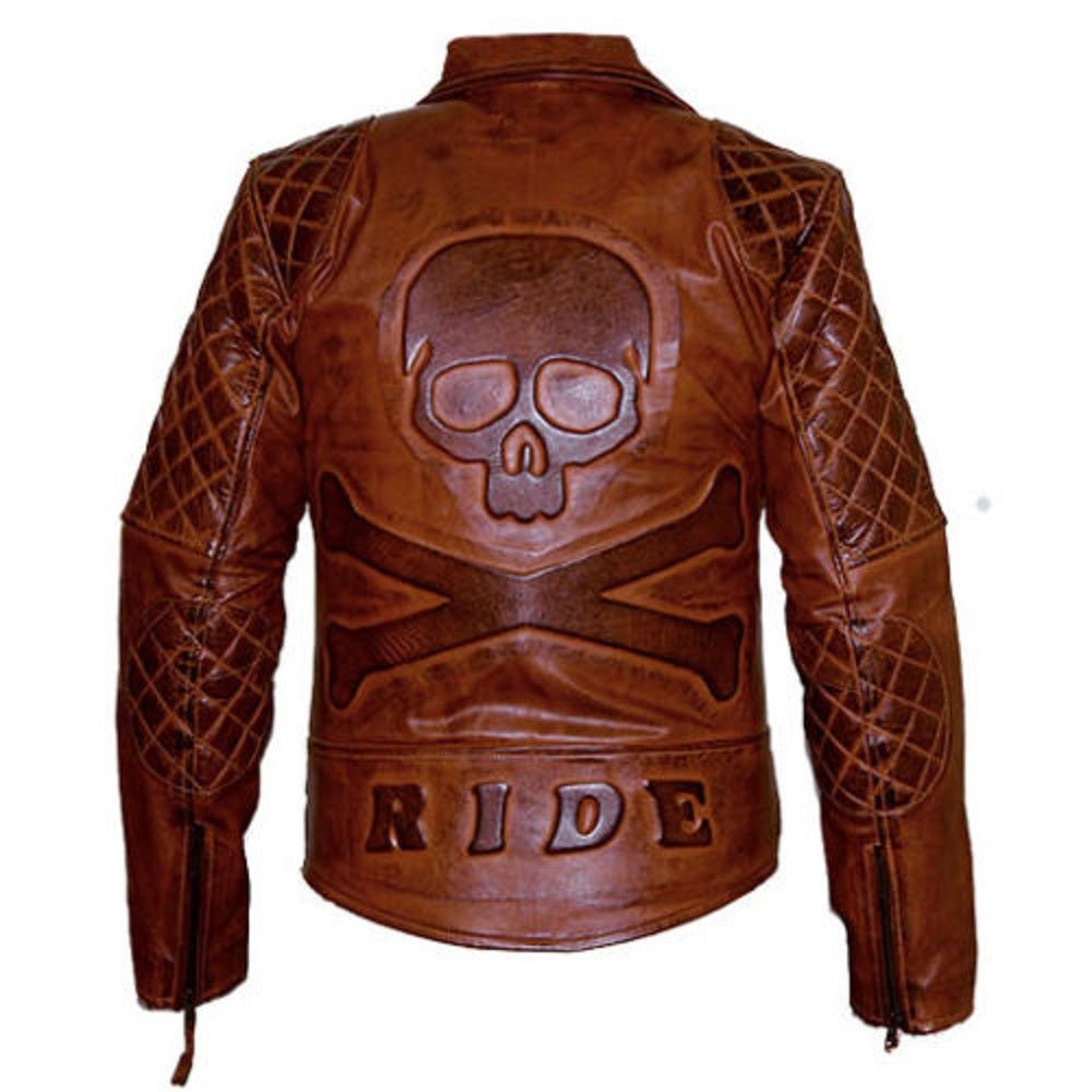 Ride in style with the Men’s Classic Diamond Motorcycle Biker Jacket crafted from distressed vintage brown leather. The diamond quilted stitching on the shoulders and sleeves adds rugged style and extra durability.