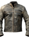 Men’s Distressed Black Leather Biker Jacket Quilted Shoulders & Upper Back