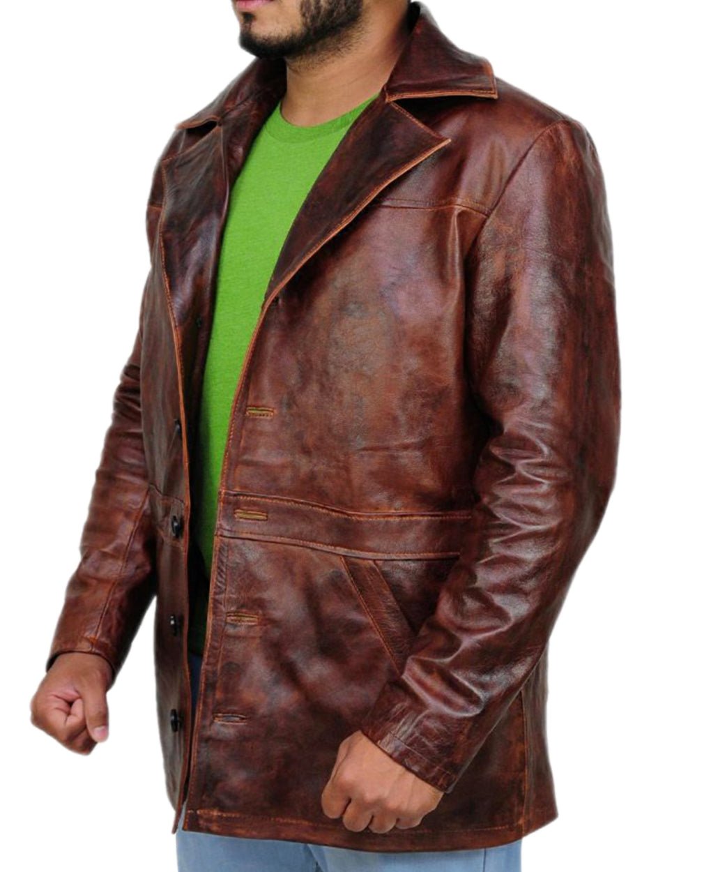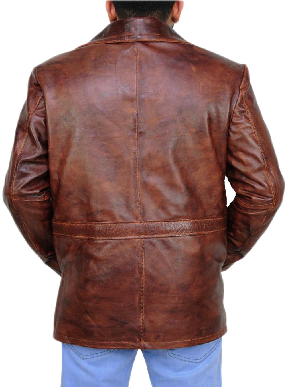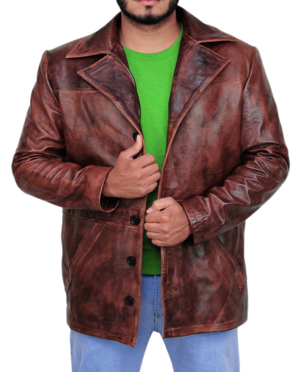 Men’s Distressed Brown Lambskin Leather Car Coat