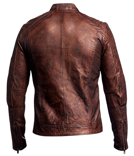 Men’s Distressed Brown Leather Cafe Racer Motorcycle Jacket Vintage Biker Outerwear