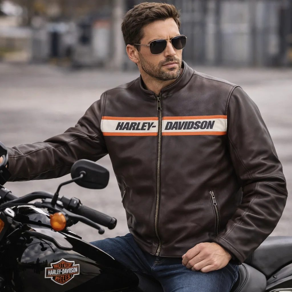 - Logo: Harley-Davidson branding and patches