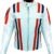 Bold red and blue racing stripes on a white leather base for a classic café racer look