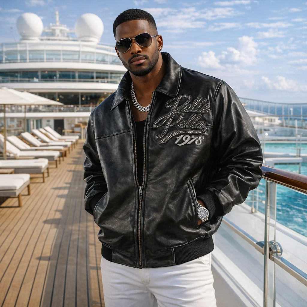 The Pelle Pelle EXOTIC Black Leather Jacket is a luxurious and stylish piece known for its high-quality craftsmanship and distinctive design. This jacket embodies sophistication and modern fashion, combining classic black leather with unique detailing to create a standout outerwear piece. Its sleek appearance and premium materials make it a versatile choice for both casual and formal occasions. It is high quality jacket will have smooth, good look, well-attached lining that enhances comfort.