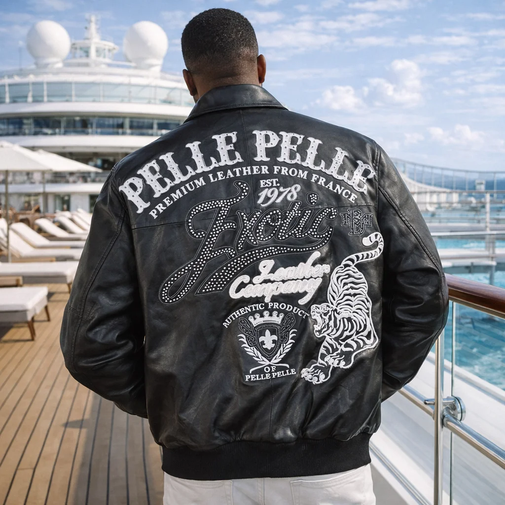 The Pelle Pelle EXOTIC Black Leather Jacket typically features:
