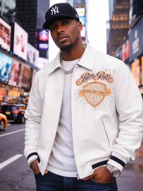 The Pelle Pelle Legends Live Forever White Studs Jacket is designed for fashion enthusiasts who want to make a bold statement. Its distinctive studded design and classic white color make it suitable for special occasions, fashion events, or adding a touch of luxury to everyday outfits. The jacket’s premium materials ensure both style and durability, making it a standout piece in any wardrobe.