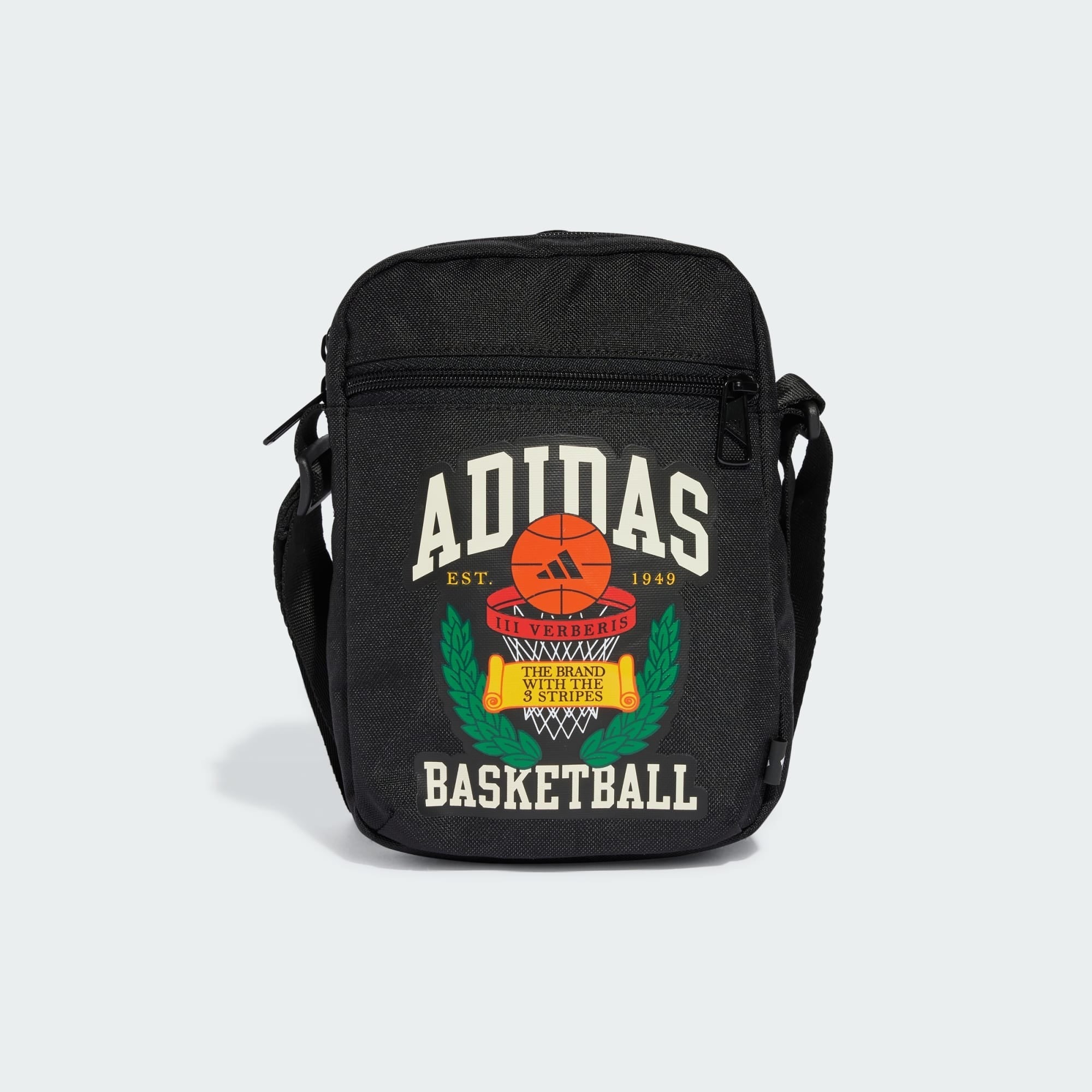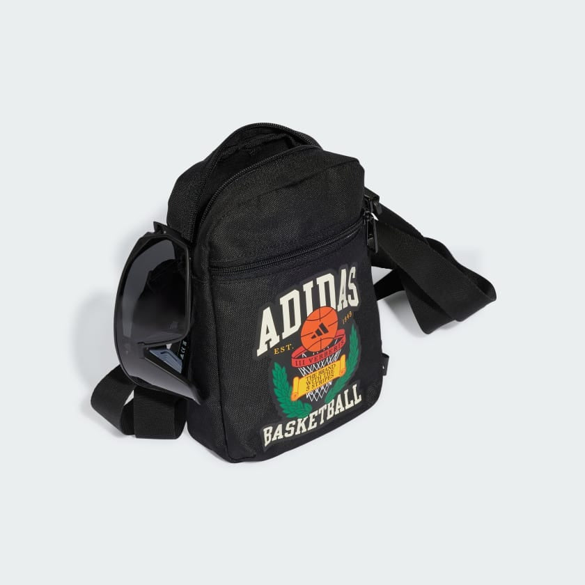 Stay organized and ready to go with this versatile adidas bag. Whether you're heading to the gym or the game, the main compartment and front zip pocket provide room for your small essentials. Made of durable recycled polyester, it shows off a colorful collegiate-inspired basketball graphic that compliments your sporty style. No matter where the day takes you, an adjustable shoulder strap makes it easy to find just the right fit. This product is made with at least 50% recycled materials. By reusing materials that have already been created, we help to reduce waste and our reliance on finite resources and reduce the footprint of the products we make.