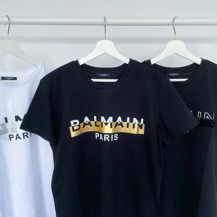 Introducing the Balmain Paris Premium T-Shirt. This luxurious black tee is meticulously crafted in Portugal, ensuring the highest quality standards. Featuring the iconic Balmain Paris print, this t-shirt is made from premium fabric that offers exceptional comfort and a sophisticated look. Perfect for those who appreciate elegance and style, this t-shirt is a must-have addition to any wardrobe.