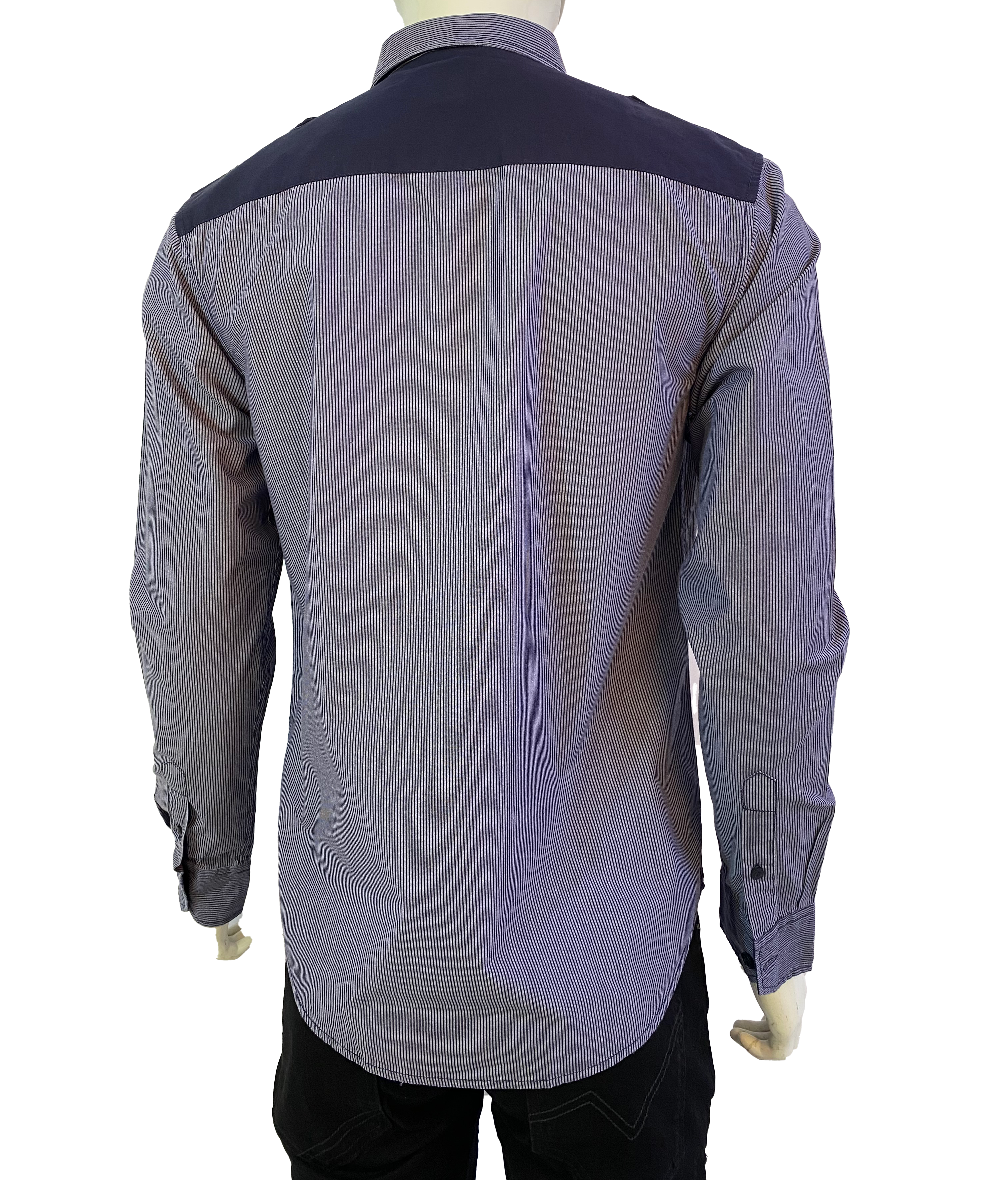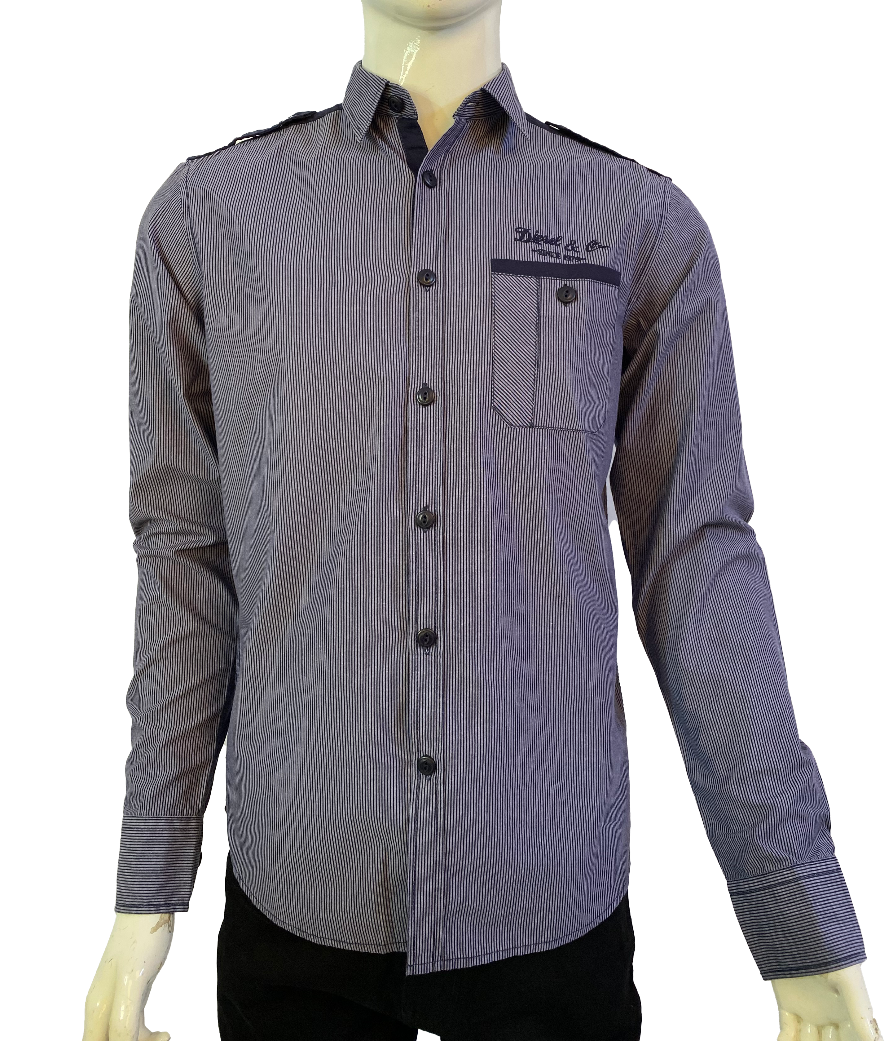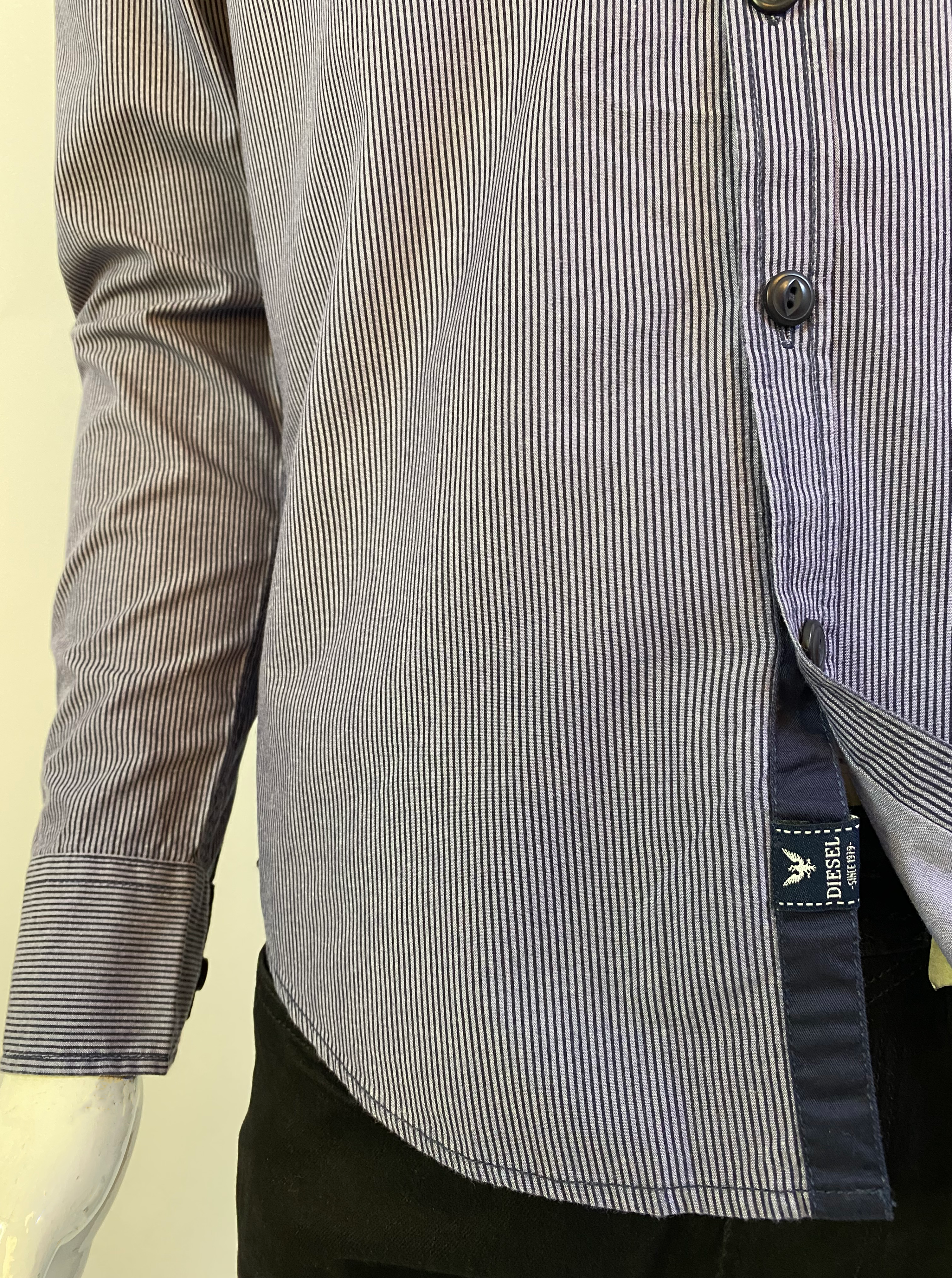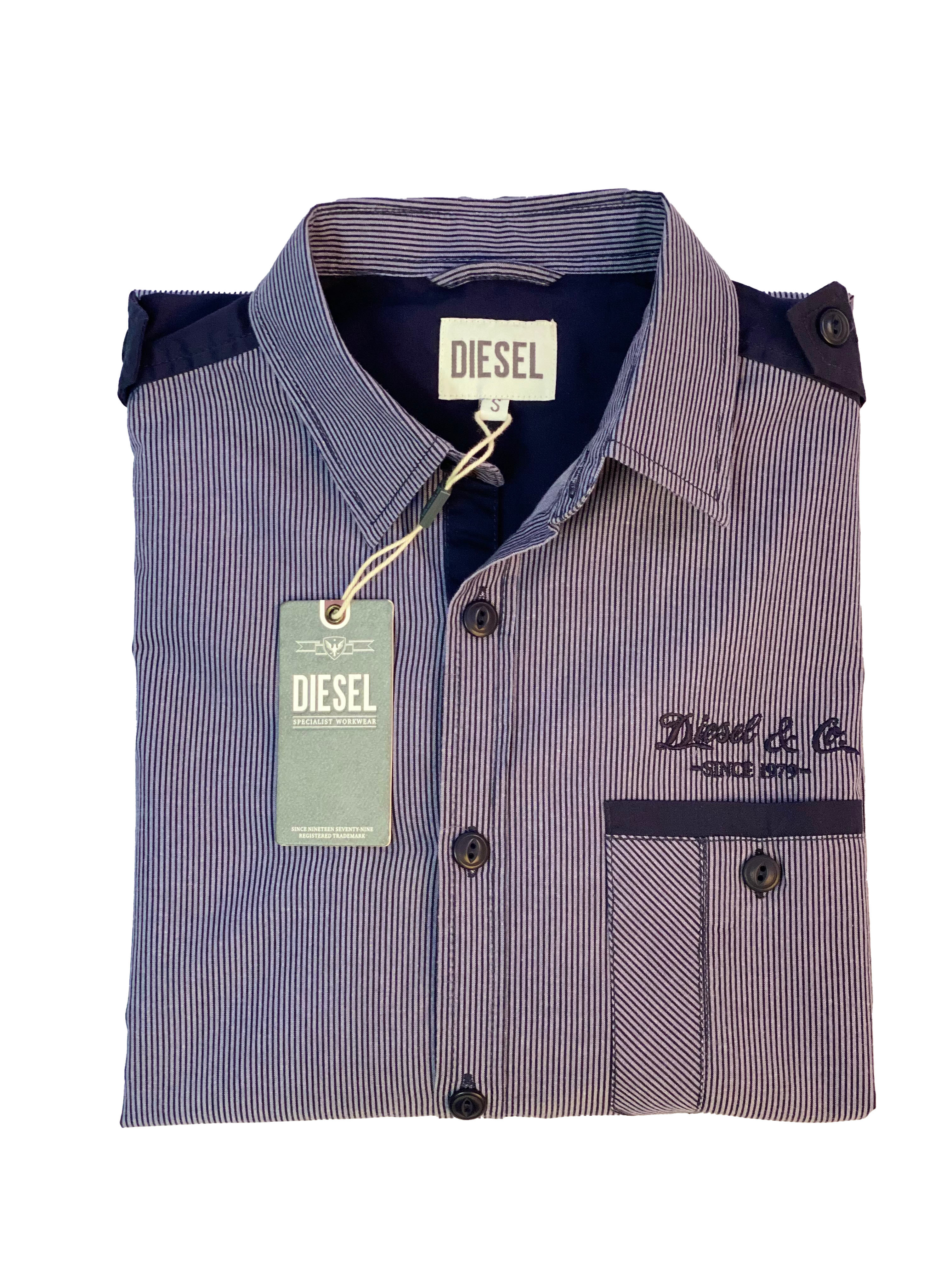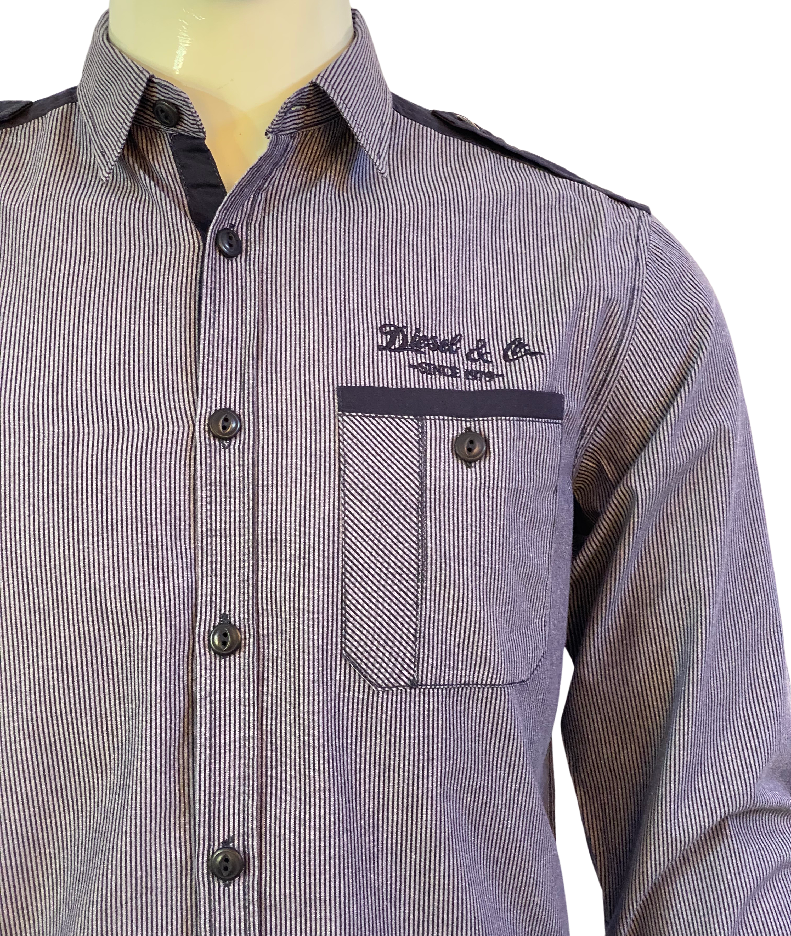 Step into the world of high fashion with this exceptional Diesel men's shirt. Made with premium quality, this shirt showcases a striking pinstripe design in navy on a dark grey base, creating a visually appealing contrast. The shirt comes with a convenient front pocket, further enhancing its practicality. Adorned with the Diesel logo and tags, it guarantees authenticity and quality. This pinstripe shirt isn't just a piece of apparel, it's an epitome of style and luxury that will elevate your wardrobe.