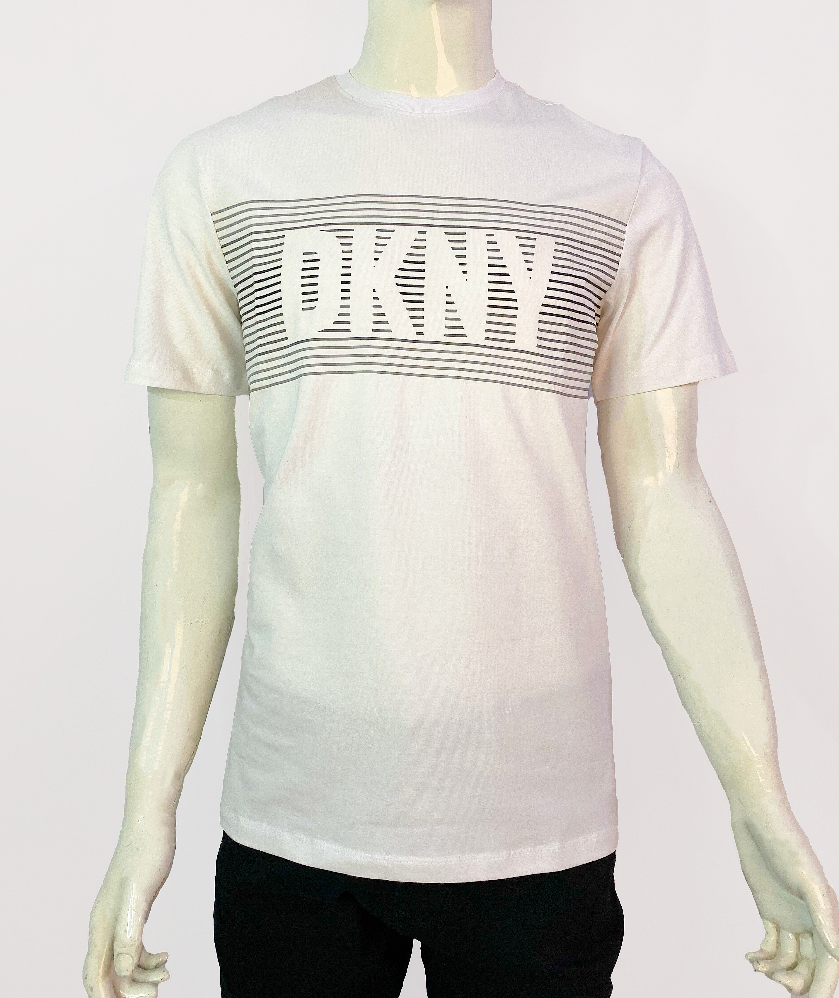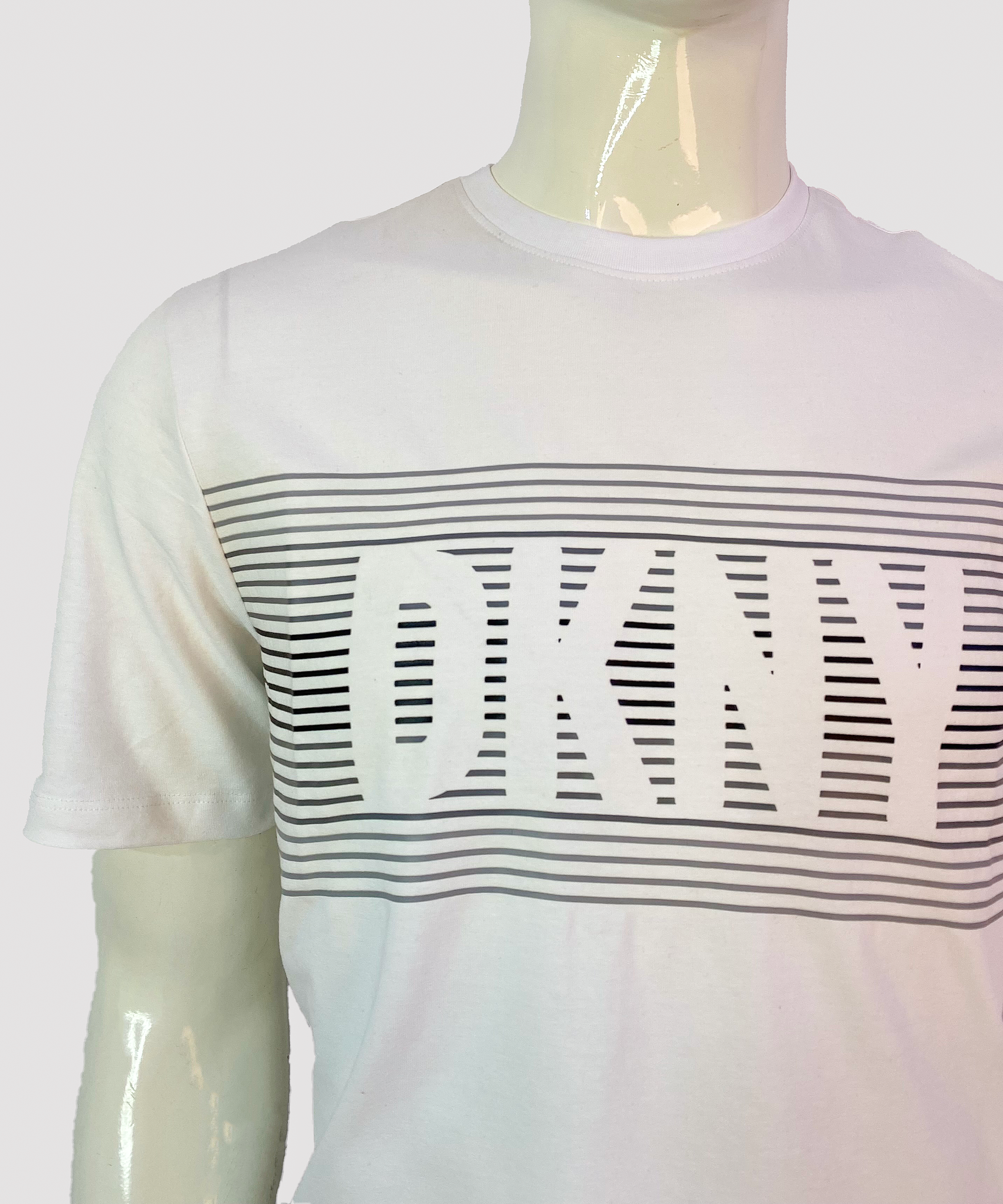Introducing a captivating DKNY (Donna Karan New York) t-shirt in a classic white hue. This piece showcases an eye-catching actor stretch logo print, adding a unique twist to its design. The brand's signature print further enhances its appeal, making it a must-have for fashion enthusiasts. Crafted for comfort, this t-shirt seamlessly marries style and ease. Truly, an exquisite addition to any wardrobe.